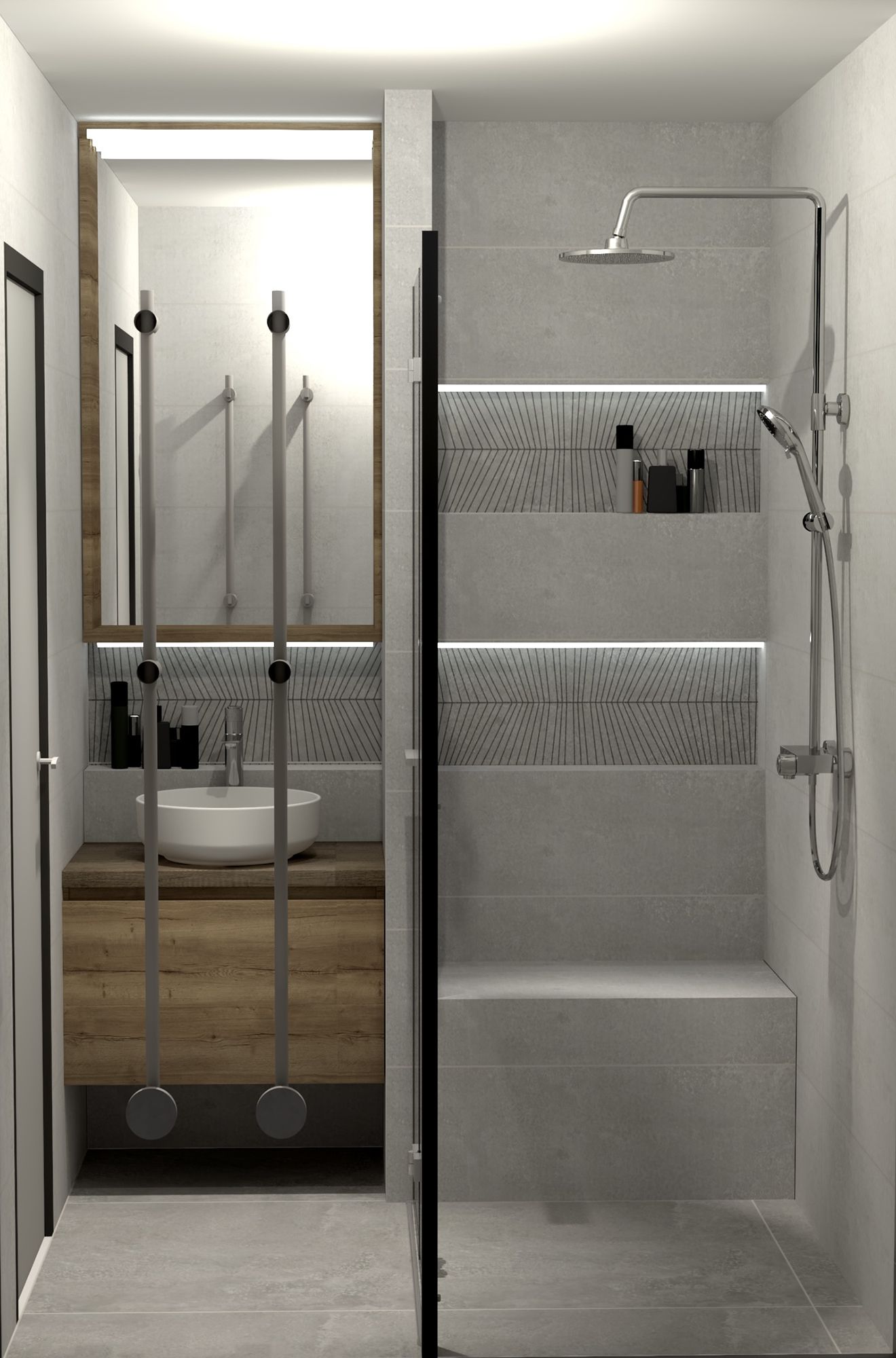 Zvažte instalaci otevřeného sprchového koutu bez závěsů nebo těžkých dveří, což vizuálně rozšiřuje prostor a přidává koupelně moderní a otevřený vzhled.