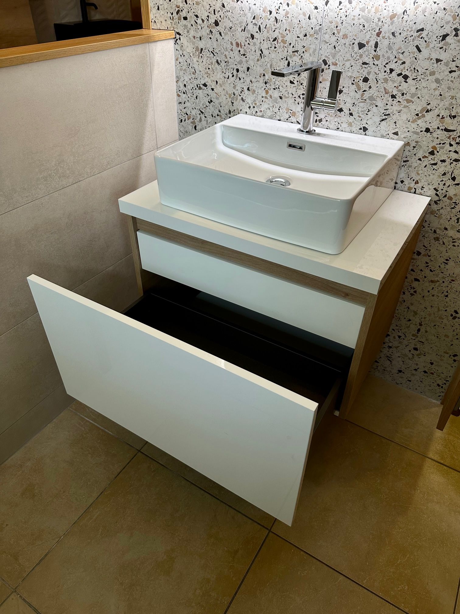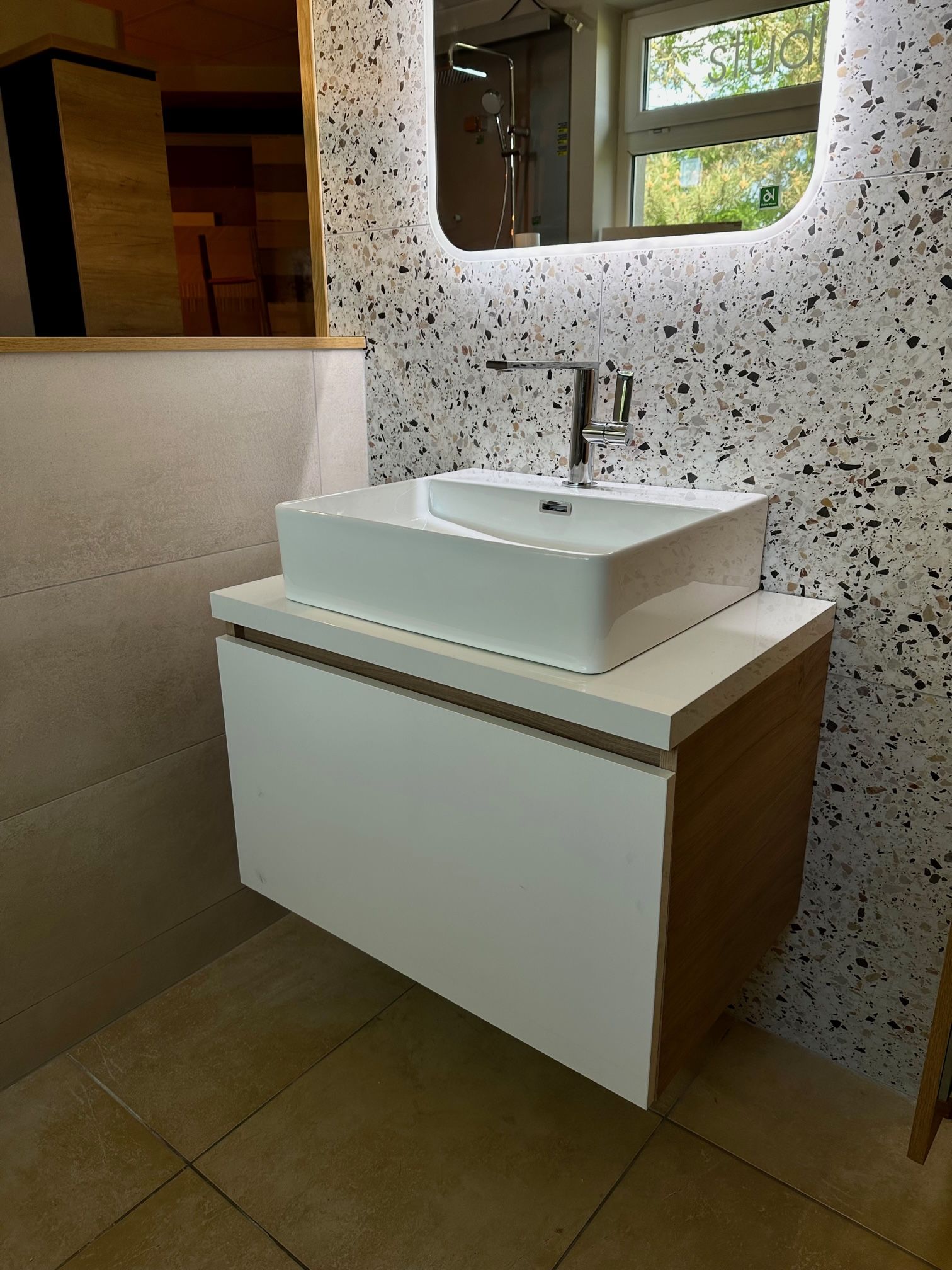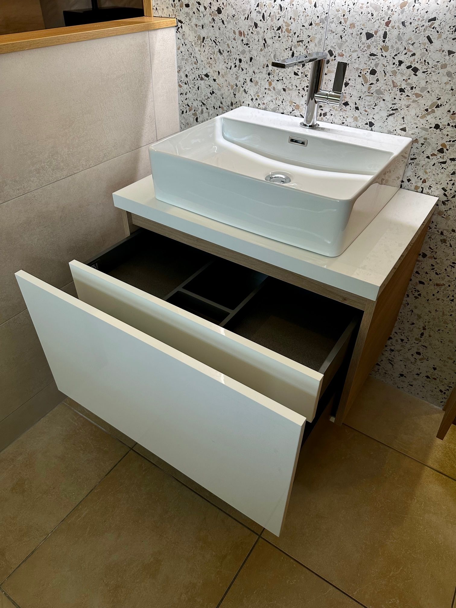 Koupelnová skříňka Opera se vyznačuje moderním designem a praktickou funkcionalitou. Výrazným prvkem je masivní horní deska a jednolitá čelní plocha zásuvky, kterou od ní odděluje tenká linie korpusu. Doplňkem je vysoký sloup, kde jsou stejné designové prvky jako u umyvadlové skříňky. Celkově je koupelnová skříňka Opera zajímavým a praktickým doplňkem do každé koupelny a díky možnostem výroby nabízí velkou variabilitu při kombinaci dřevěných povrchů a laků, takže se snadno přizpůsobí danému prostoru a vkusu. To, že jsme si tuto skříňku vymysleli a vytvořili představu o tom, jak by měla vypadat, dává celému projektu osobitý charakter a přidanou hodnotu.