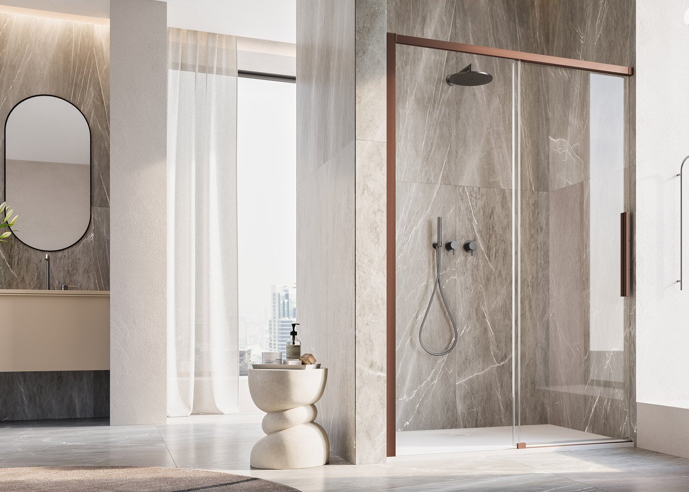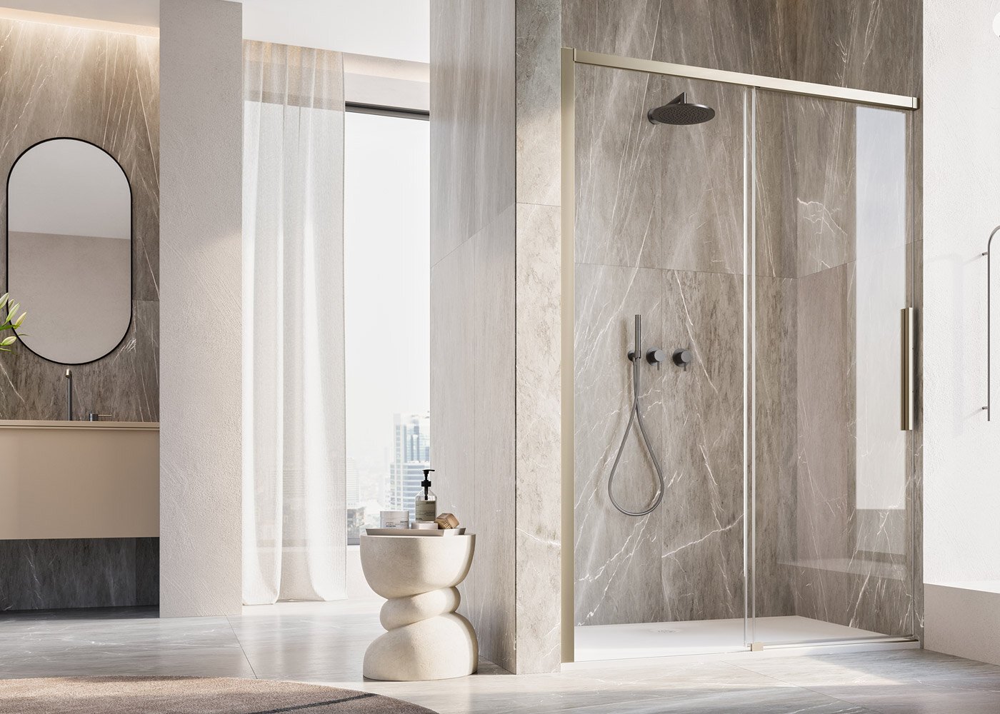Vstupte do sprchy s lehkostí. ORIANA nabízí komfortní vstupní zónu, která vás nijak neomezuje – a přitom působí vzdušně a elegantně.