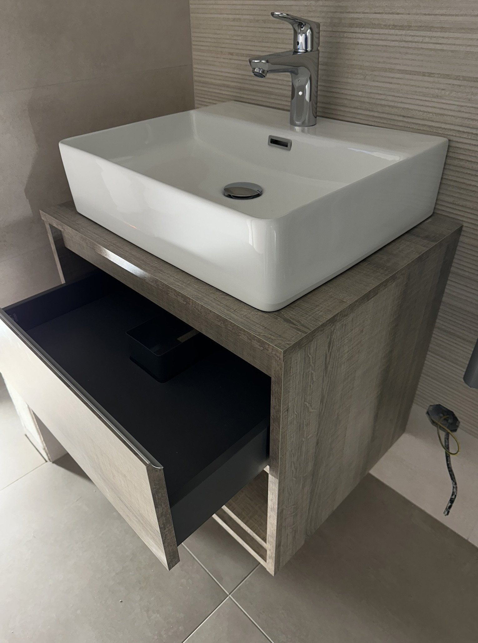 Součástí realizace jsou i promyšlené detaily, které pomáhají zvýraznit jednotlivé prvky a podtrhnout celkovou atmosféru koupelen.
