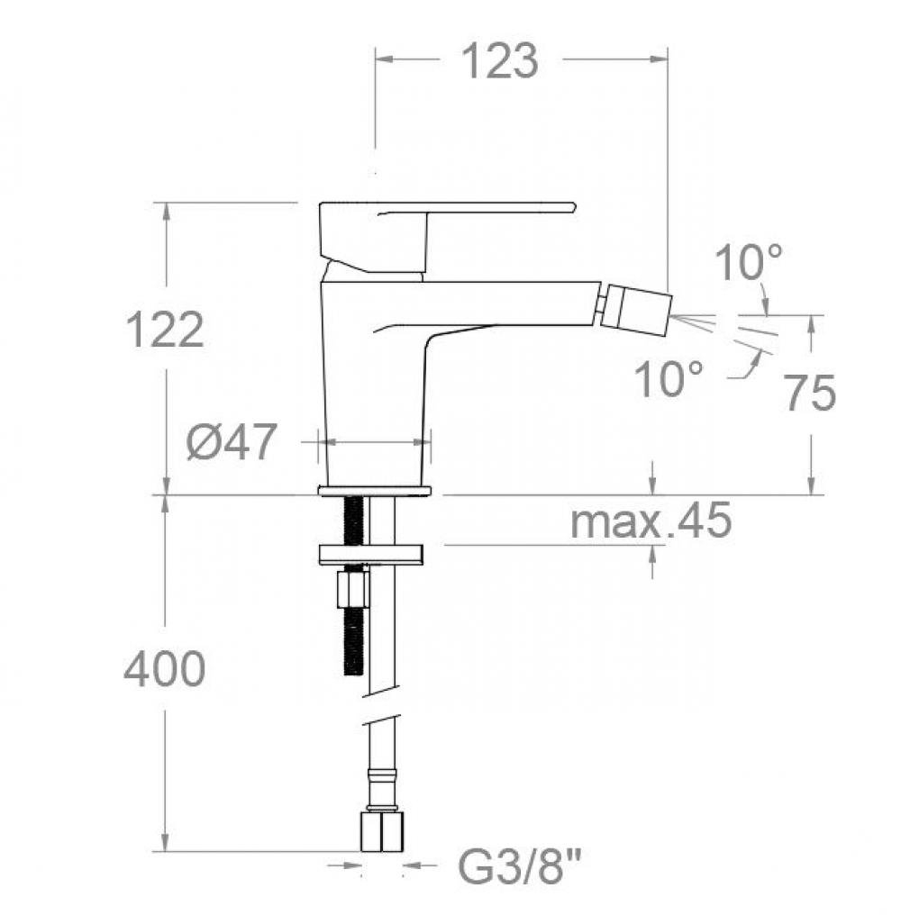 Bidetová baterie značky Ramon Soler, systém S2 pro 50% úsporu vody, omezovač teploty a patentovaný antikorozní systém.