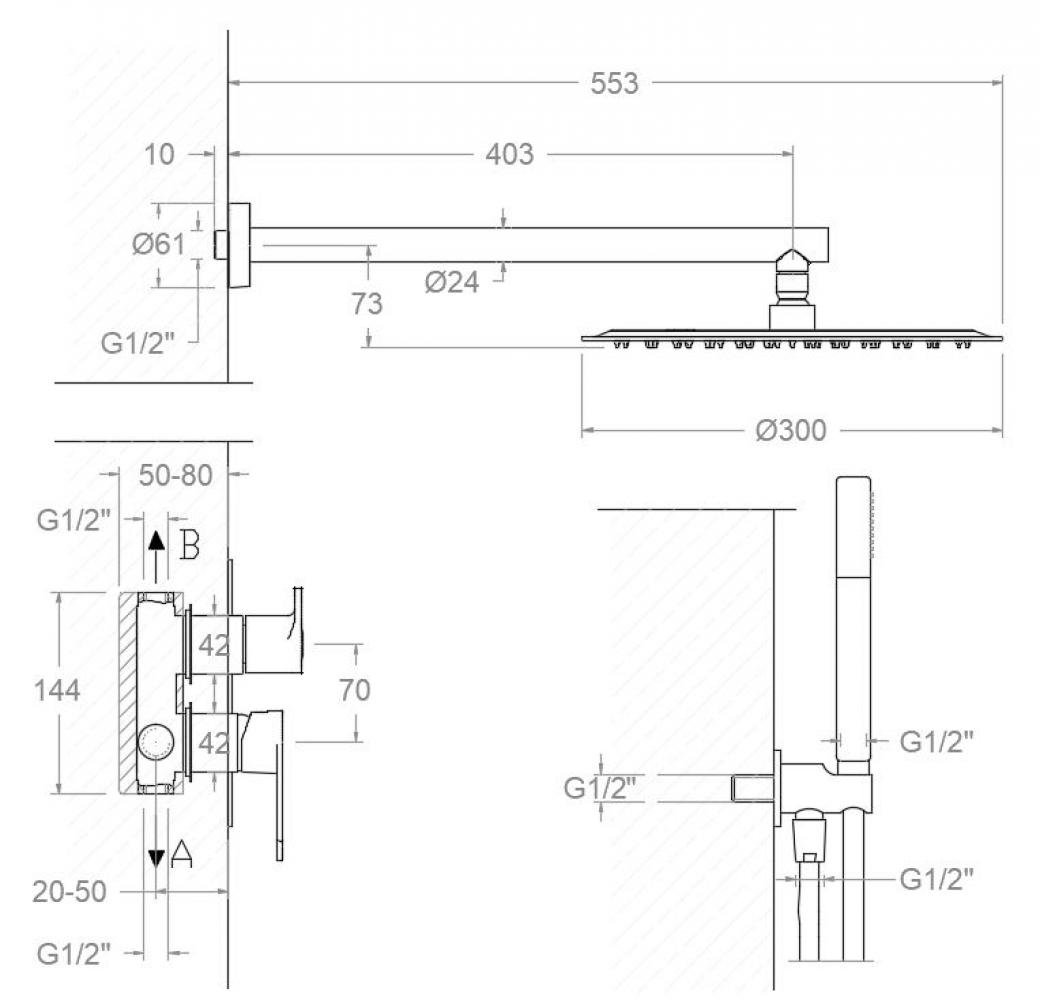 - S 300mm kulatou sprchovou hlavicí