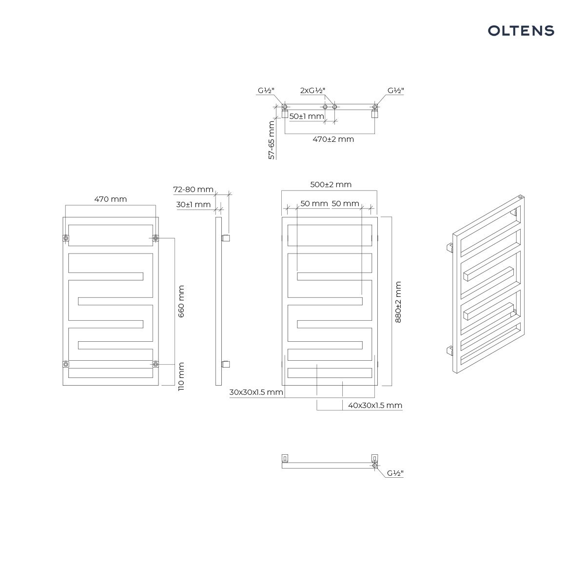 - přípojka s roztečí 47 cm pro spodní připojení ve vertikálních osách radiátoru