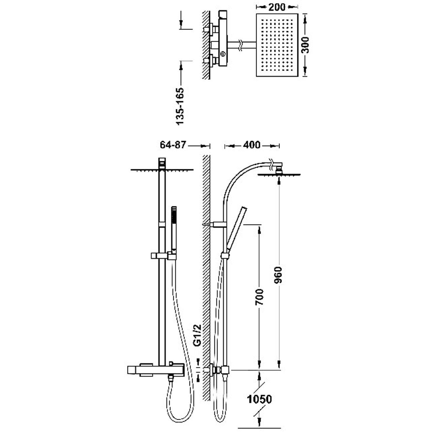 - pevná sprcha 300×200 mm s kloubem, materiál nerezová ocel